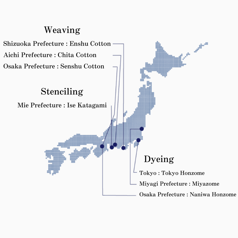 Sankatsu’s cotton fabrics are woven on narrow-width looms (Kohaba Shokki) still remaining in the production regions.